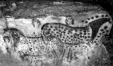 Пещера Пеш-Мерль. Южная Франция. 28-16 тыс. лет до н.э. Изображение лошадей окружены пятью «знаками власти» в виде человеческих ладоней, предположительно, над прирученными животными