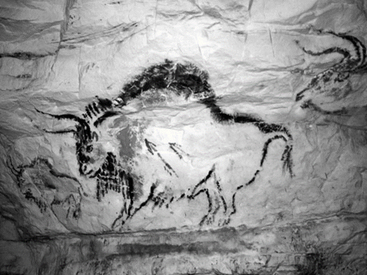 Капова пещера. Россия. Южный Урал. 18-16 тыс. лет до н.э. На теле бизона изображение двух стрел и крови