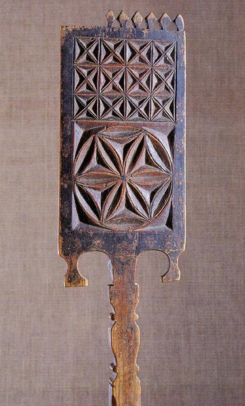 Прялка. Дерево. XIX век. Восьмилучевая звезда — соответствует восьмичастному делению восточнославянского солнечного календаря